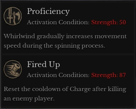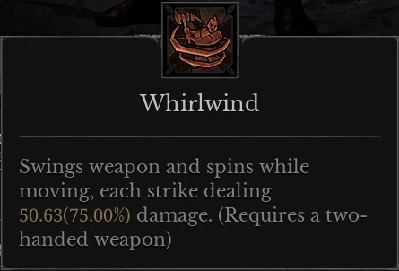 Proficiency: At 50 Strength, Whirlwind's spin increases the fighter's movement speed by a moderate amount for the duration.
